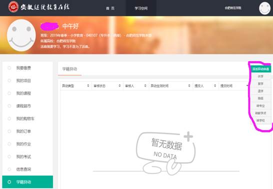 第三步:选择休学、复学、退学、转专业、转教学点等业务,提交至审核。