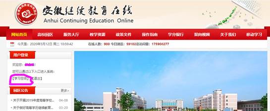 用户名:身份证号,原始密码为身份证后六位(第一次登录后请及时修改密码)。进入学习空间