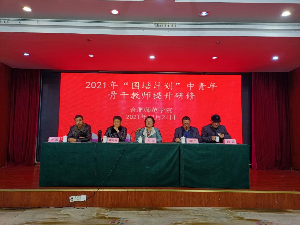 12月21日上午,由巢湖市、庐江县教育体育局主办,太阳成tyc234cc承办的2021年“国培计划”中青年骨干教师提升研修顺利开班。太阳成城集团tyc234cc院长吴文、文学院副院长何旺生、教师教育学院副院长闫龙、太阳成城集团tyc234cc副院长宋辉、数学与统计学院教授沈南山出席本次开班仪式,仪式由宋辉主持。