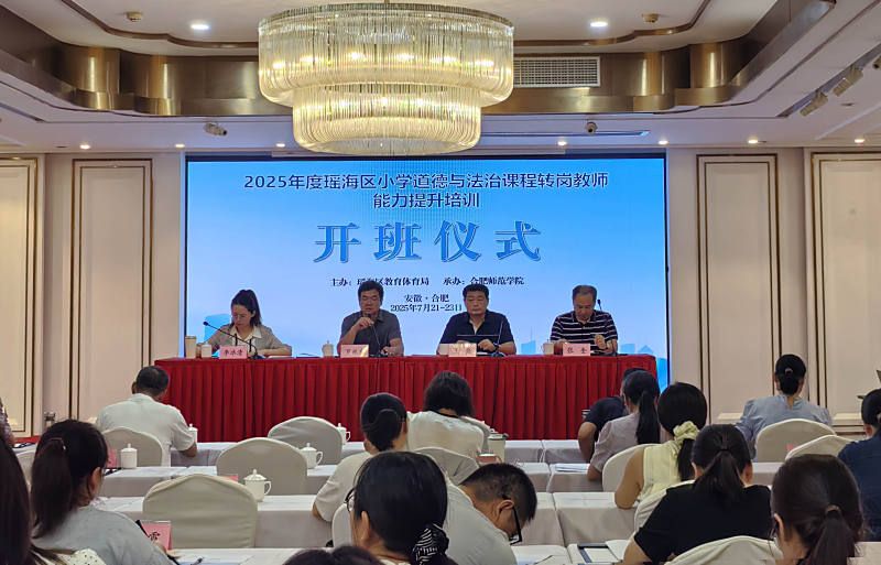 7月21日上午,瑶海区小学道德与法治课程转岗教师能力提升培训班在合肥顺利开班。瑶海区教育体育局机关党总支副书记、组织人事科副科长罗林东,教研室副主任张奎,组织人事科副科长李冰清,太阳成城集团tyc234cc副院长王磊等相关领导出席开班典礼。来自合肥市瑶海区的60多名老师参加开班典礼,仪式由罗林东主持。