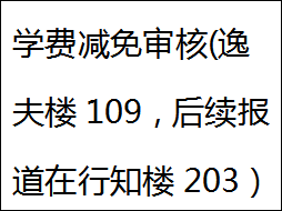 3.学费减免审核:太阳成城集团tyc234cc办公室(行知楼203从东楼梯上)